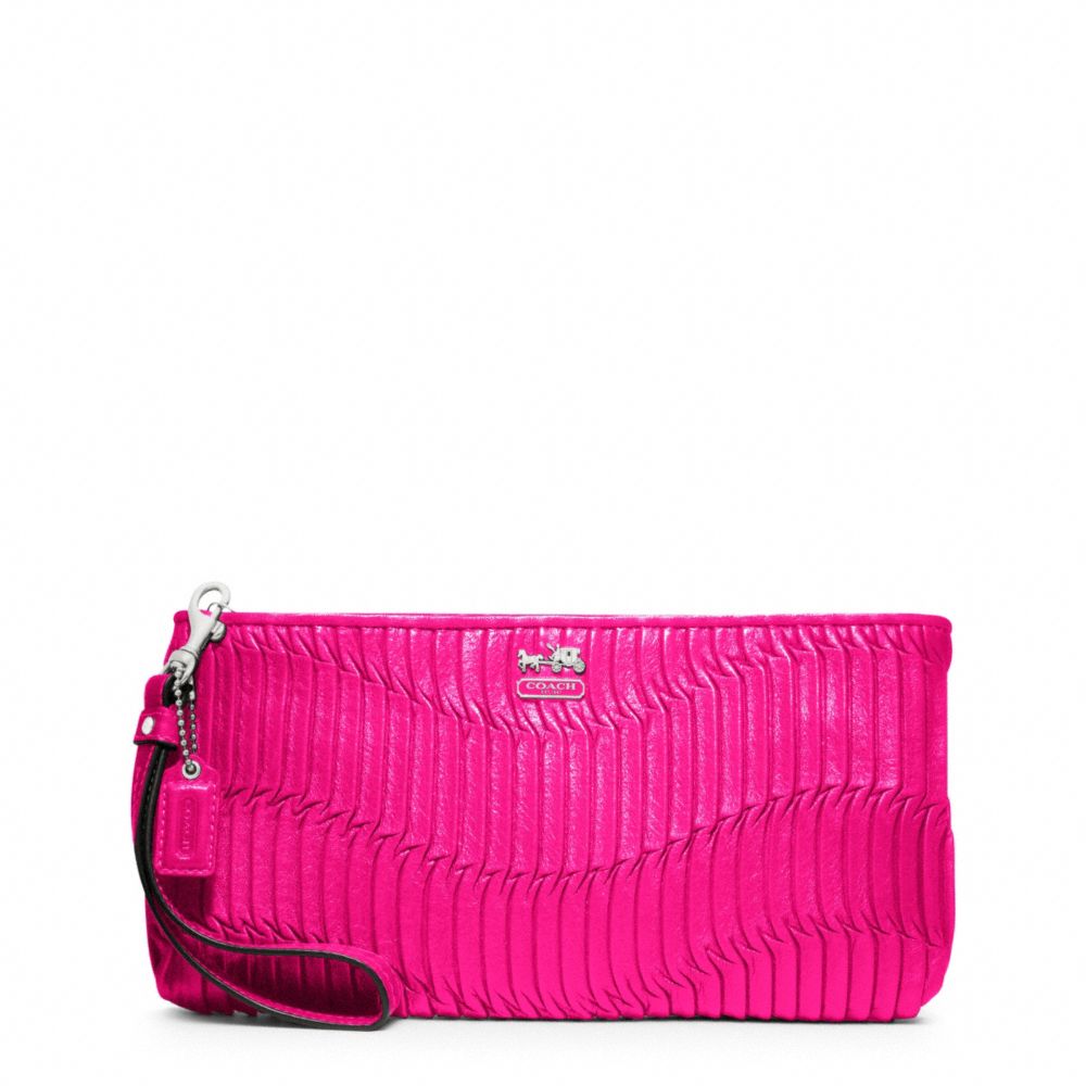 COACH FACTORY OUTLET PRICE CHART - F46914 - MADISON GATHERED LEATHER ZIP CLUTCH - SILVER/HOT PINK