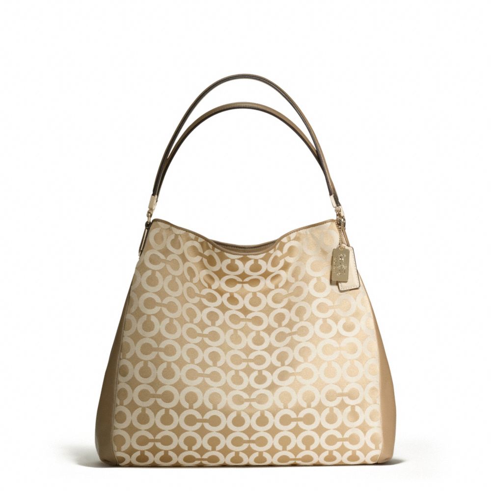 COACH FACTORY OUTLET PRICE CHART - F25637 - MADISON OP ART SATEEN PHOEBE SHOULDER BAG - LIGHT GOLD/LIGHT GOLDGHT KHAKI/CHAMPAGNE