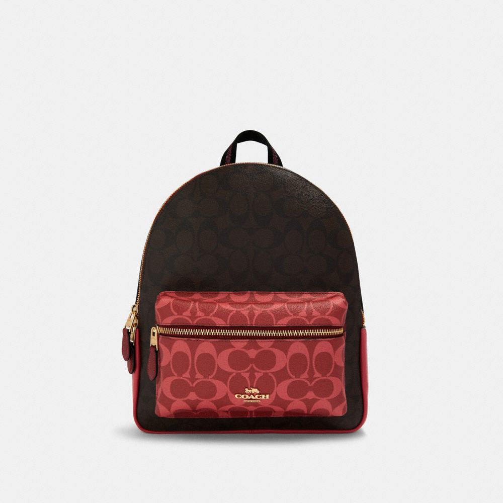 MEDIUM CHARLIE BACKPACK IN BLOCKED SIGNATURE CANVAS (COACH 91074)