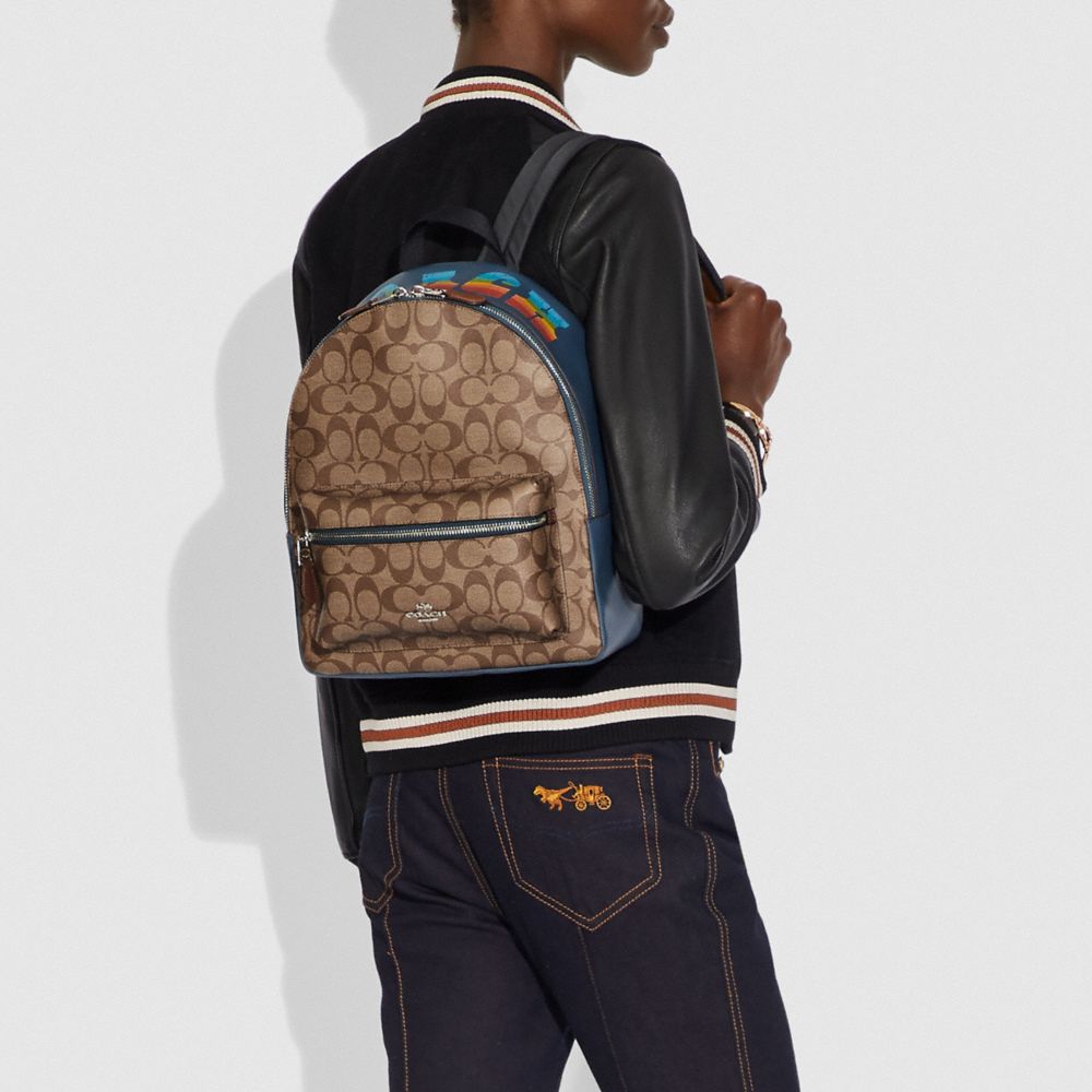 MEDIUM CHARLIE BACKPACK IN SIGNATURE CANVAS WITH RAINBOW COACH ANIMATION (COACH F72712)