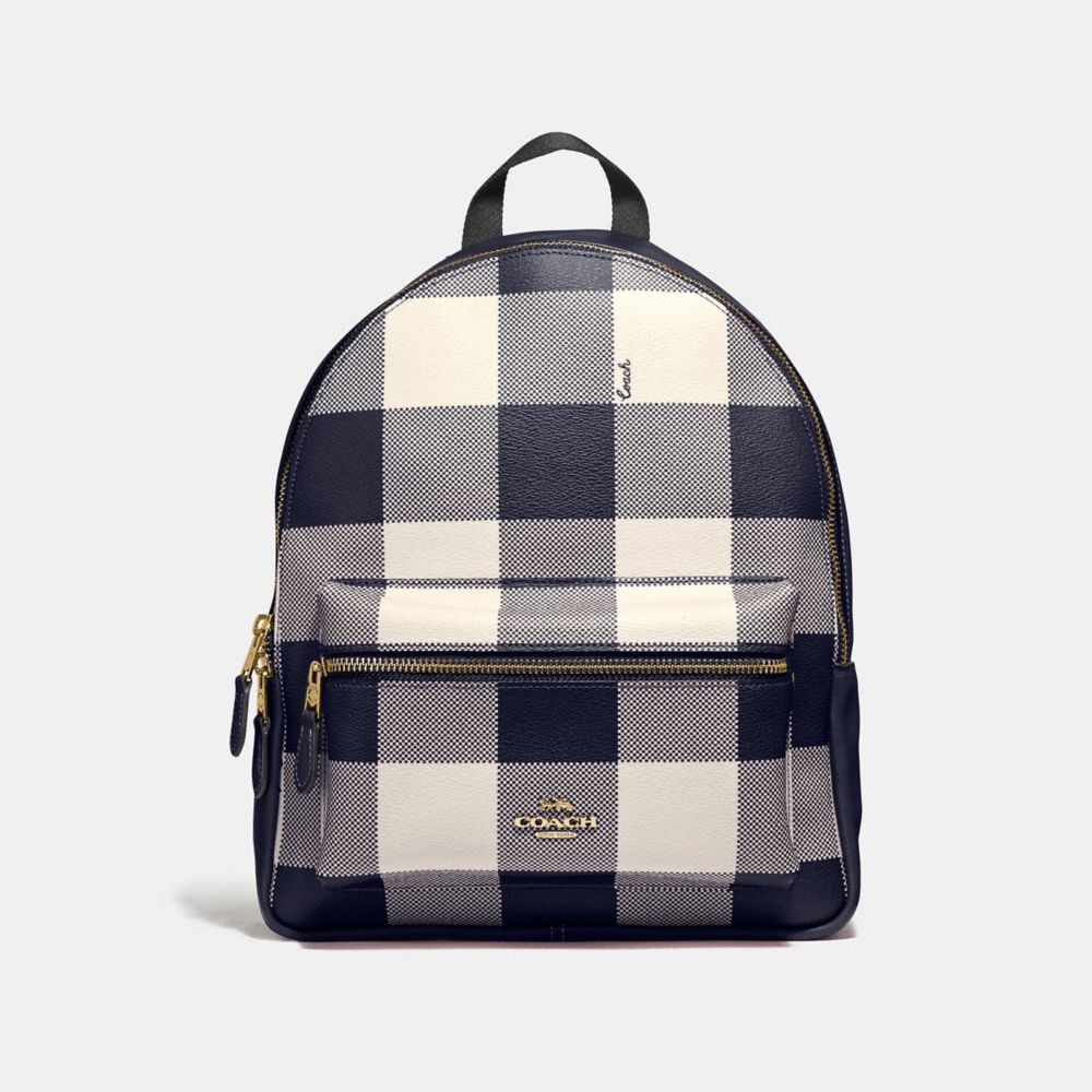 COACH FACTORY OUTLET PRICE CHART - F44953 - MEDIUM CHARLIE BACKPACK WITH BUFFALO PLAID PRINT - MIDNIGHT/LIGHT GOLD