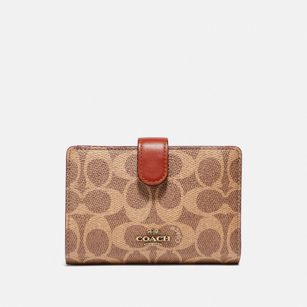 COACH FACTORY OUTLET PRICE CHART - 33034 - MEDIUM CORNER ZIP WALLET IN COLORBLOCK SIGNATURE CANVAS - B4/TAN RUST