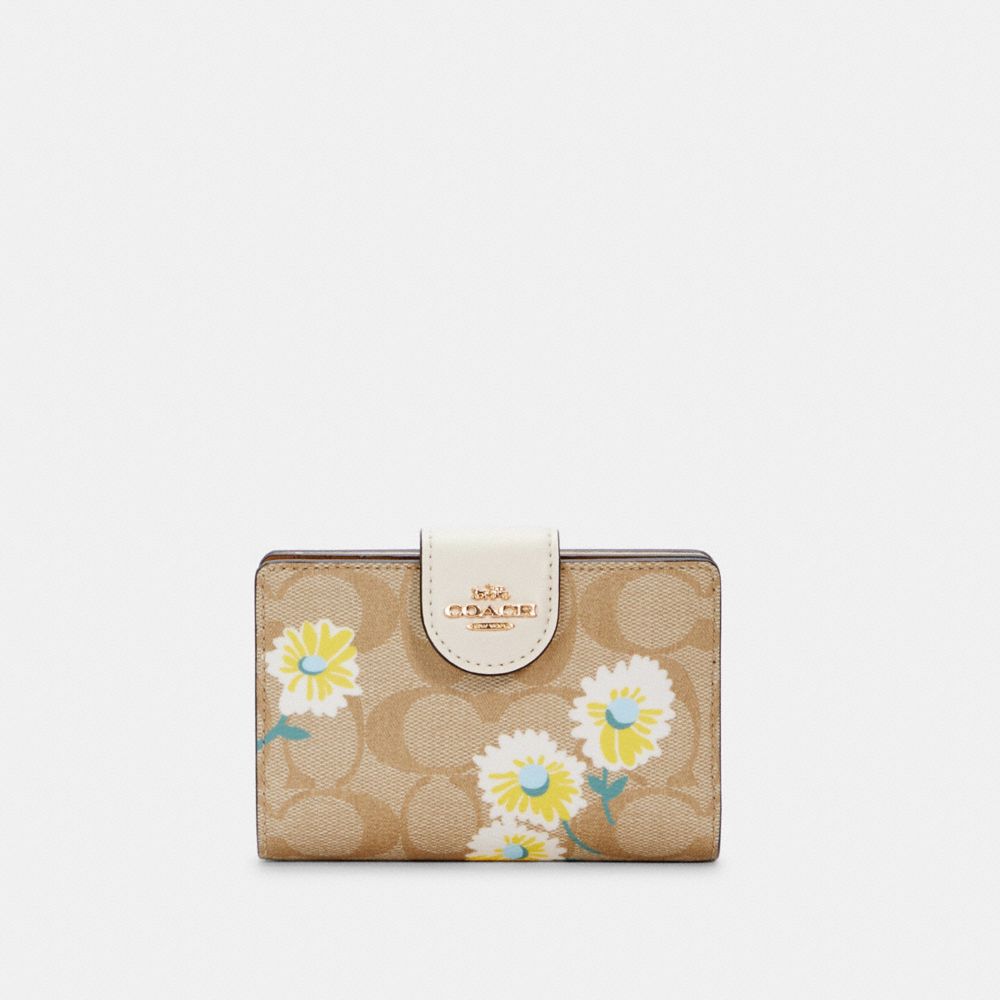 MEDIUM CORNER ZIP WALLET IN SIGNATURE CANVAS WITH DAISY PRINT (COACH C3375)