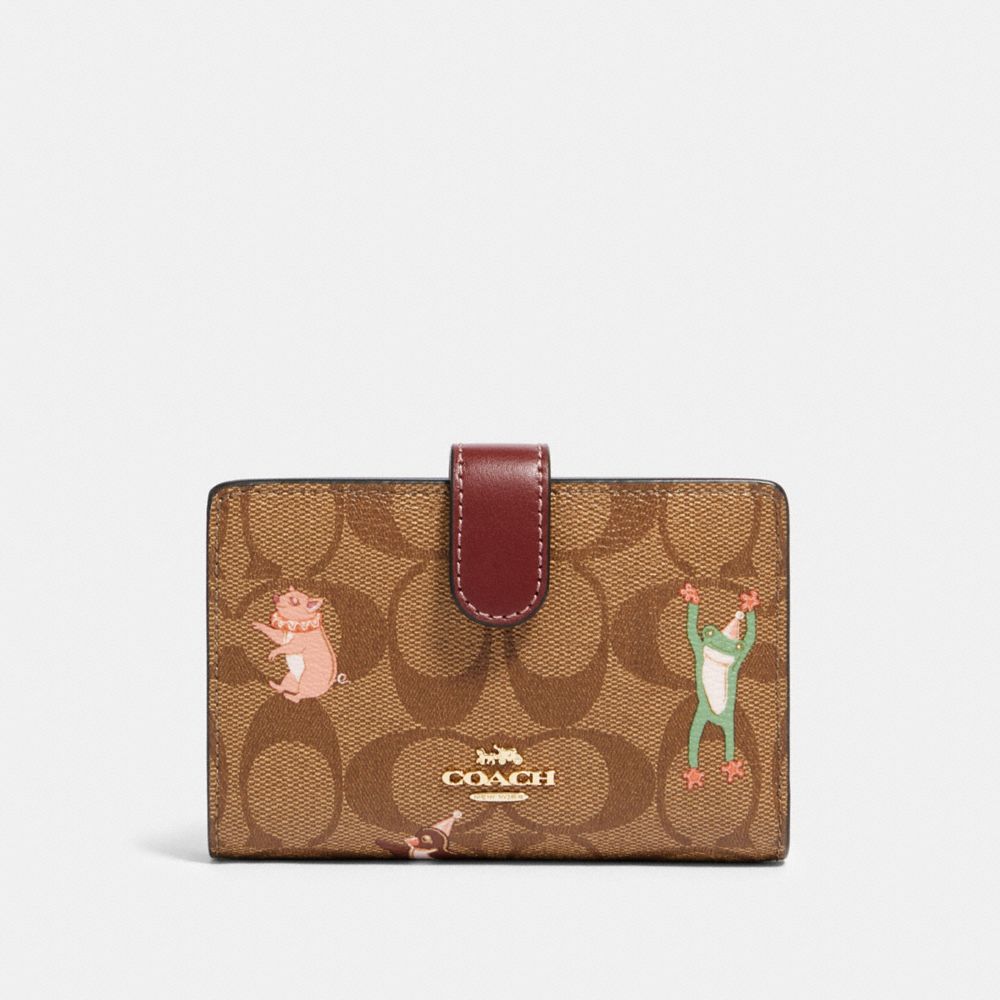 MEDIUM CORNER ZIP WALLET IN SIGNATURE CANVAS WITH PARTY ANIMALS PRINT (COACH F87911)