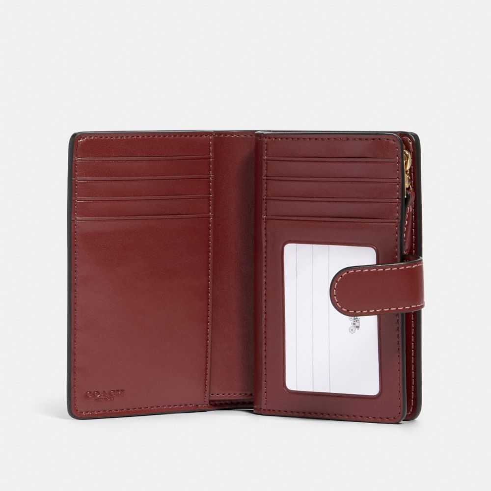 Signature coated canvas with smooth leather details| Seven credit card slots| Bill compartment| ID window| Zip pocket| Snap closure| 5" (L) x 3 1/2" (H) x 1/2" (W)