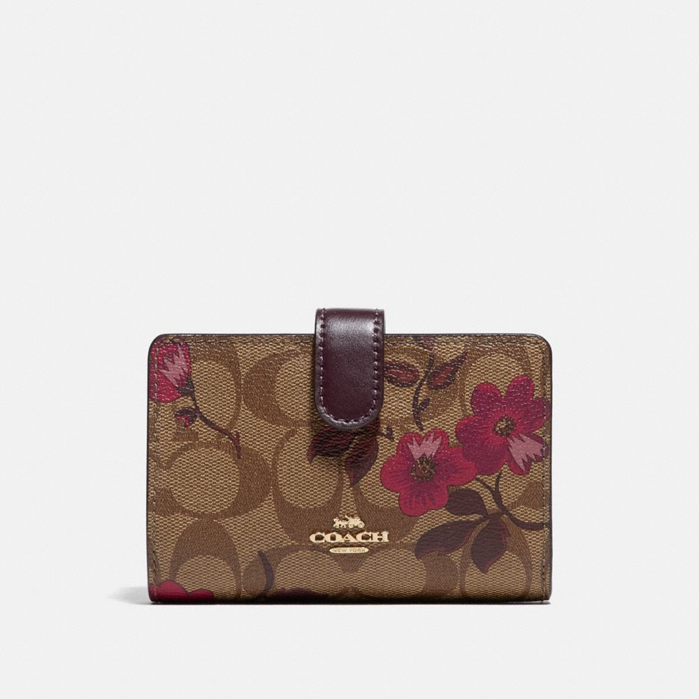 MEDIUM CORNER ZIP WALLET IN SIGNATURE CANVAS WITH VICTORIAN FLORAL PRINT (COACH F87751)