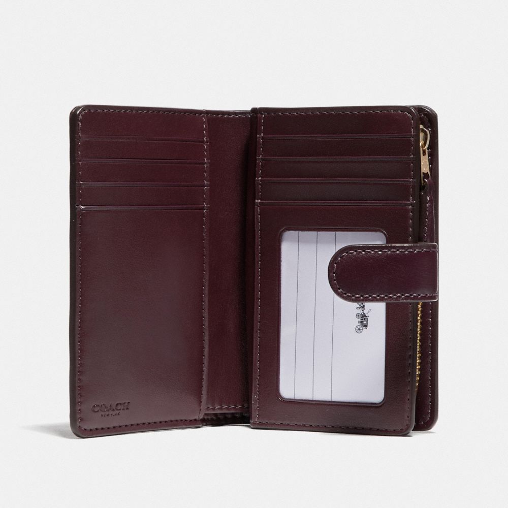 Signature coated canvas with smooth leather details| Seven credit card slots| Bill compartment| ID window| Zip pocket| Snap closure| 5" (L) x 3 1/2" (H) x 1/2" (W)