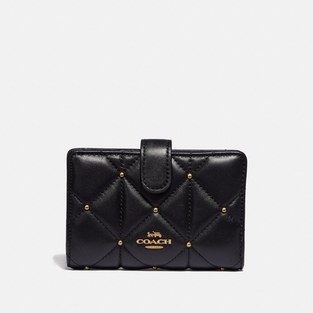 MEDIUM CORNER ZIP WALLET WITH STUDDED DIAMOND QUILTING (COACH F39102)