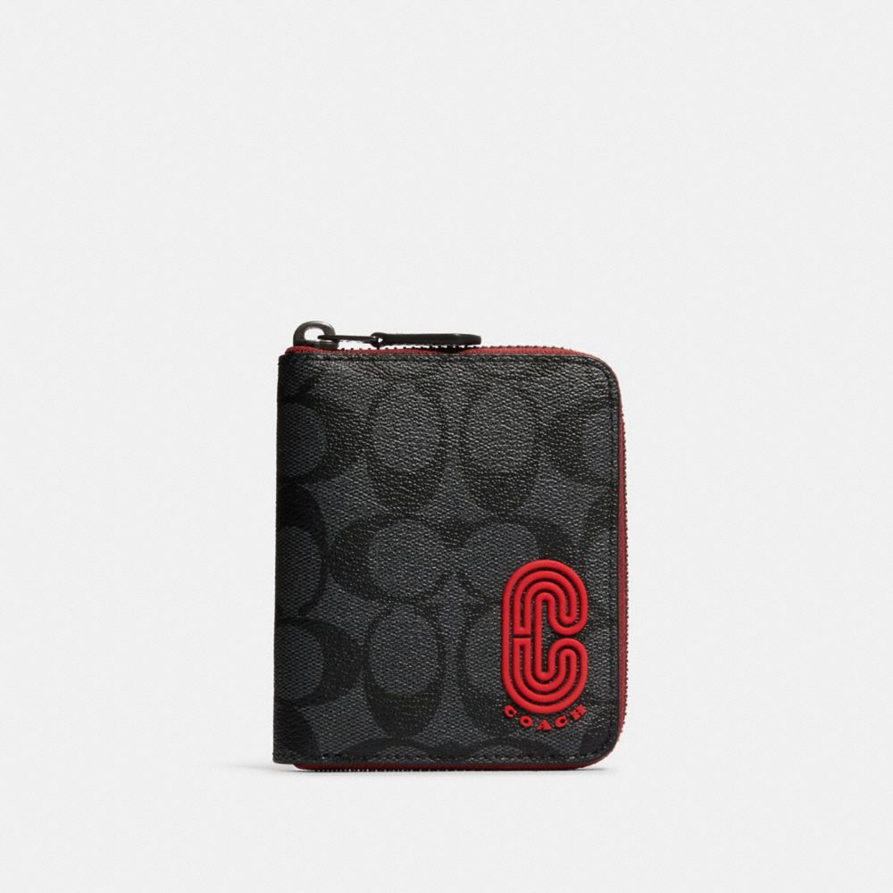 COACH FACTORY OUTLET PRICE CHART - 237 - MEDIUM ZIP AROUND WALLET IN SIGNATURE CANVAS WITH COACH PATCH - QB/SPORT RED CHARCOAL