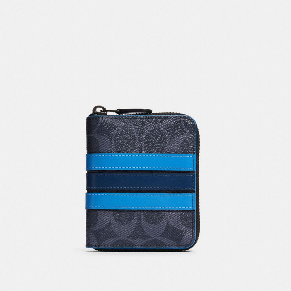 MEDIUM ZIP AROUND WALLET IN SIGNATURE CANVAS WITH VARSITY STRIPE (COACH 91674)