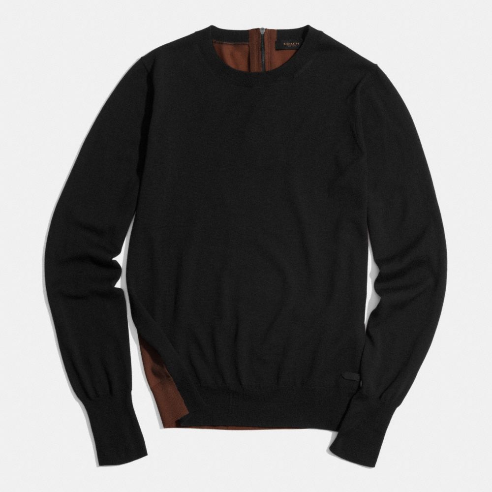COACH FACTORY OUTLET PRICE CHART - F85111 - MERINO COLORBLOCK CREW SWEATER - BLACK/OAK