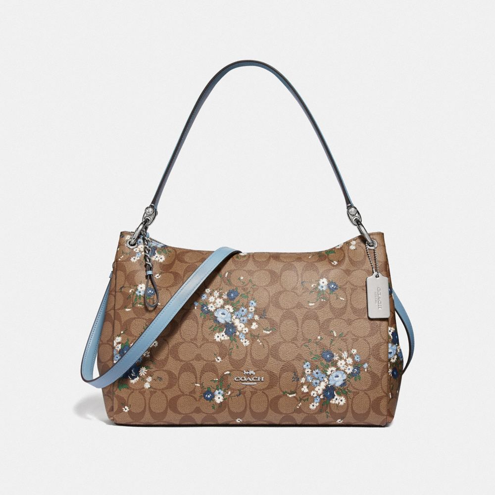 COACH FACTORY OUTLET PRICE CHART - F68022 - MIA SHOULDER BAG IN SIGNATURE CANVAS WITH FLORAL BUNDLE PRINT - KHAKI BLUE MULTI/SILVER