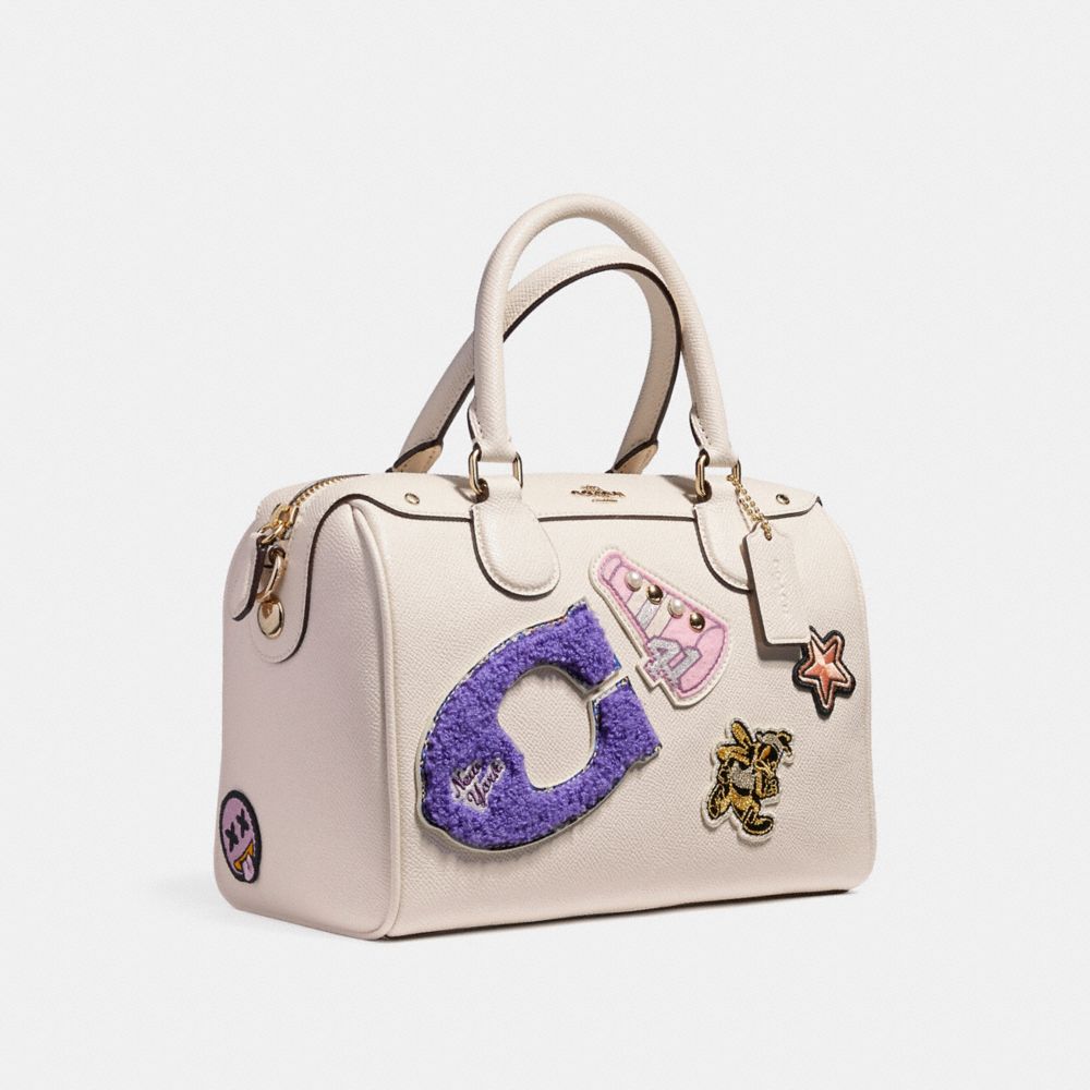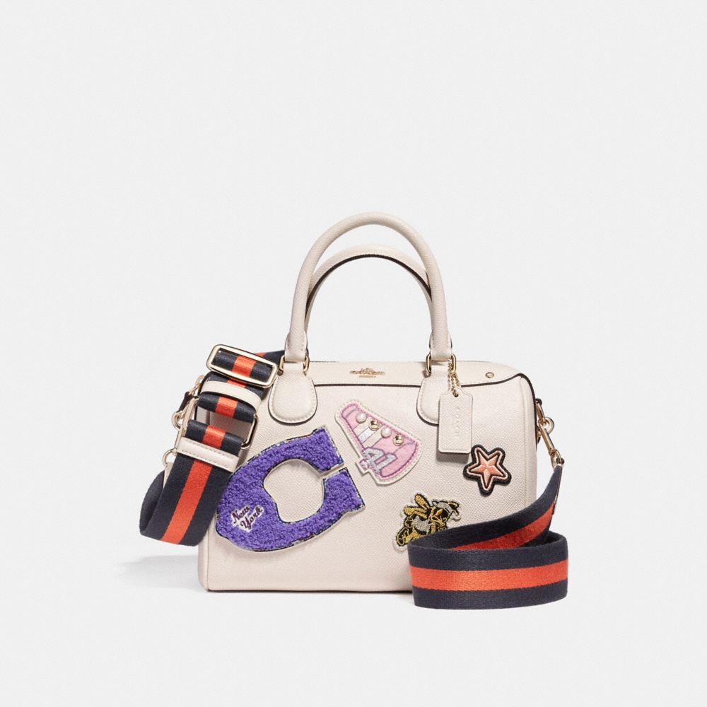 MINI BENNETT SATCHEL IN CROSSGRAIN LEATHER WITH VARSITY PATCHES AND WEBBED STRAP (COACH F20915)