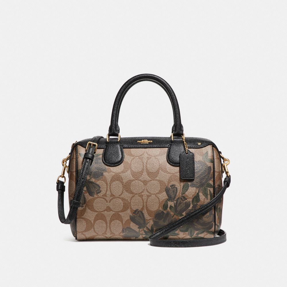 COACH FACTORY OUTLET PRICE CHART - F25870 - MINI BENNETT SATCHEL WITH CAMO ROSE FLORAL PRINT - LIGHT GOLD/KHAKI
