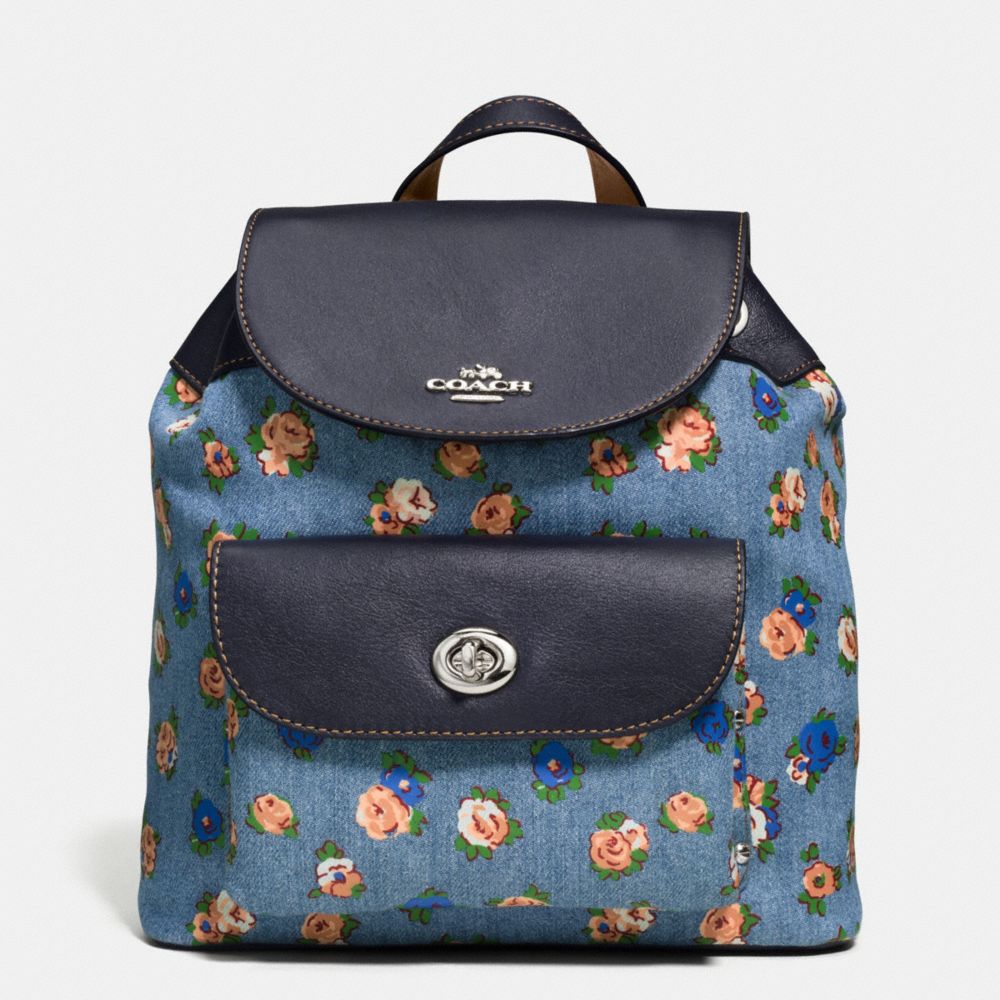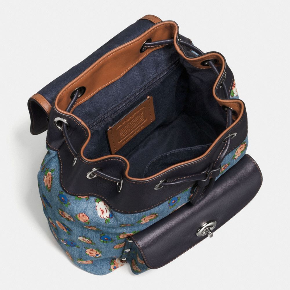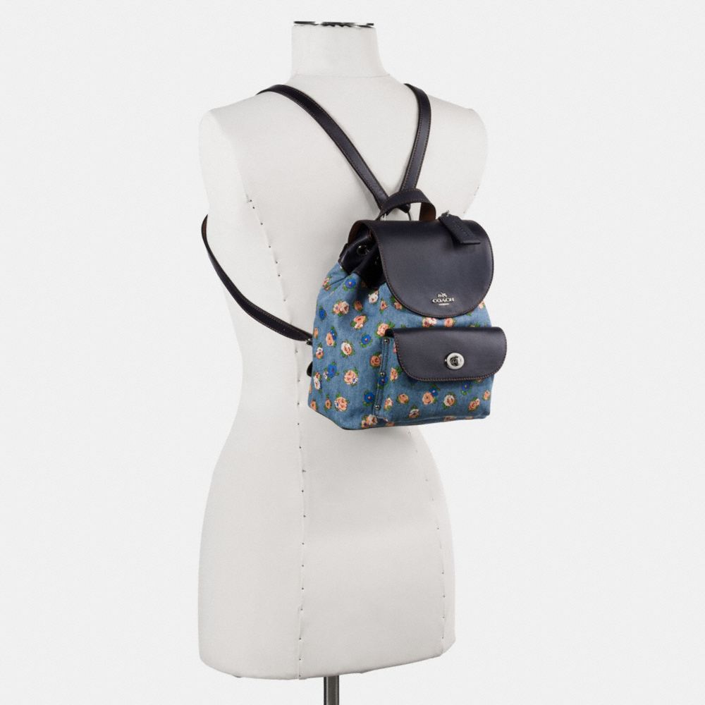 MINI BILLIE BACKPACK IN PRINTED DENIM AND LEATHER (COACH F57754)