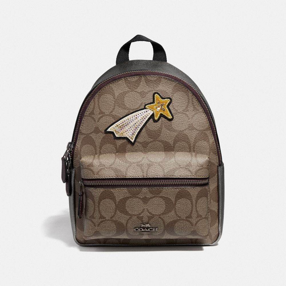 MINI CHARLIE BACKPACK IN SIGNATURE CANVAS WITH GLITTER PATCH (COACH F38059)