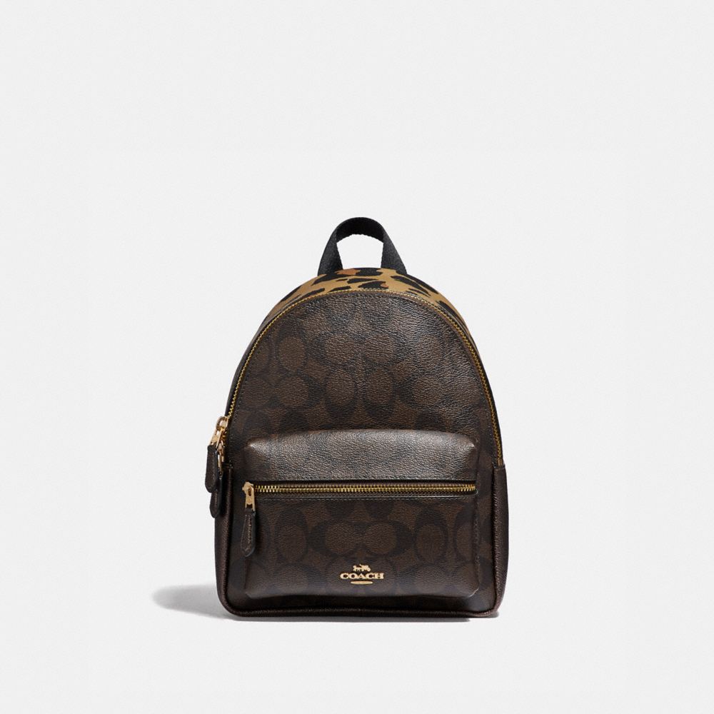 MINI CHARLIE BACKPACK IN SIGNATURE CANVAS WITH LEOPARD PRINT (COACH F39034)