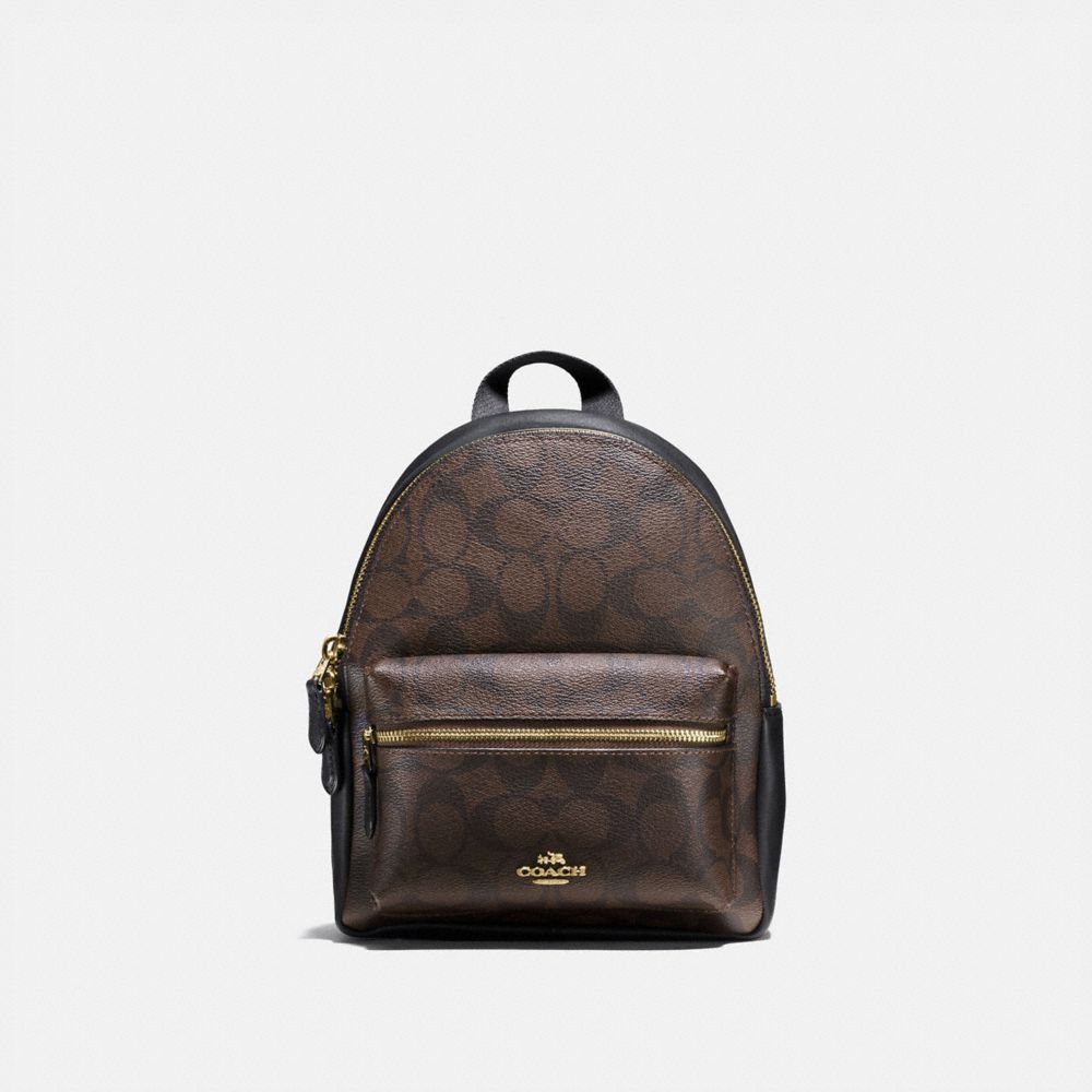 COACH FACTORY OUTLET PRICE CHART - F58315 - MINI CHARLIE BACKPACK IN SIGNATURE COATED CANVAS - IMITATION GOLD/BROWN