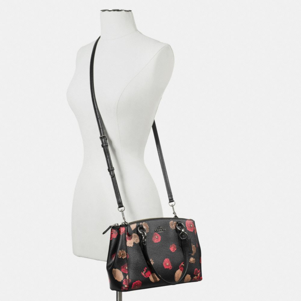 COACH FACTORY OUTLET PRICE CHART - F55538 - MINI CHRISTIE CARRYALL IN HALFTONE FLORAL PRINT COATED CANVAS - ANTIQUE NICKEL/BLACK MULTI
