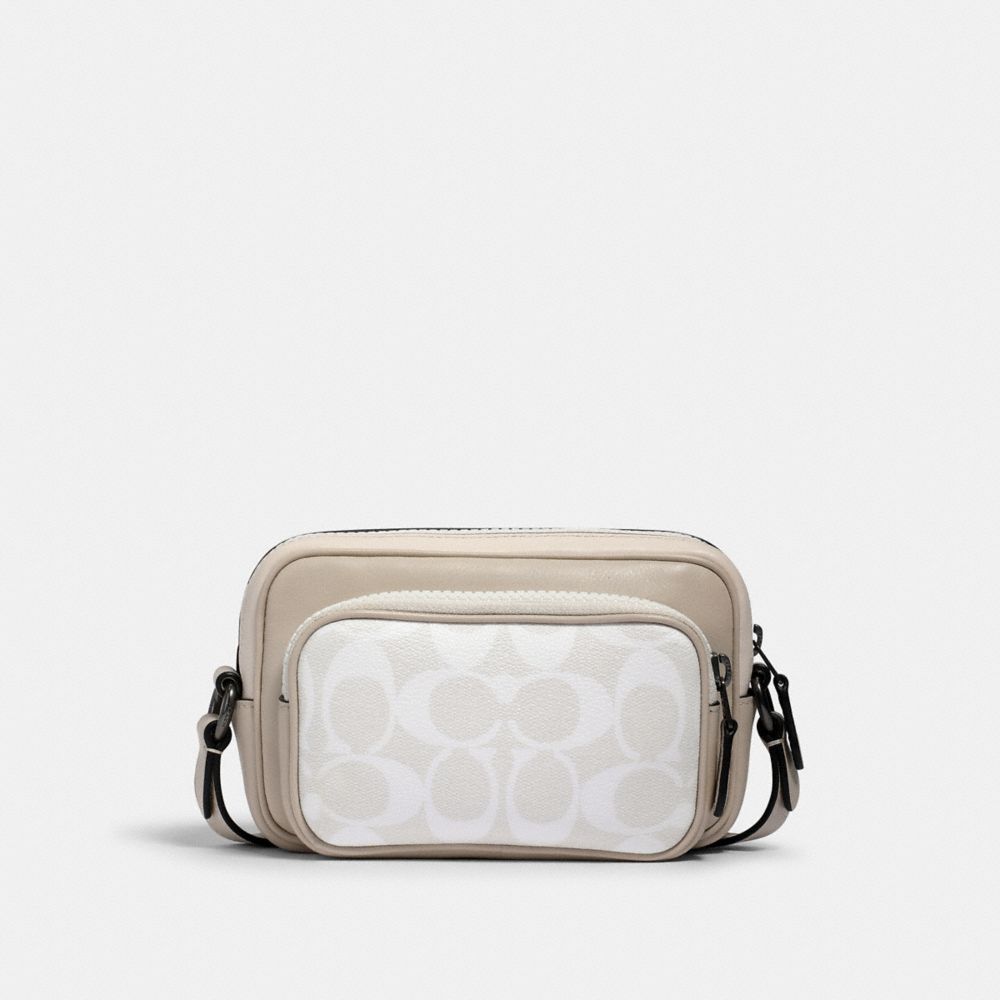 MINI EDGE DOUBLE POUCH CROSSBODY IN SIGNATURE CANVAS WITH COACH PATCH (COACH 1289)