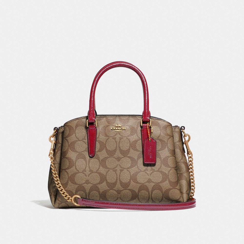 COACH FACTORY OUTLET PRICE CHART - F31985 - MINI SAGE CARRYALL IN SIGNATURE CANVAS - KHAKI/TRUE RED/LIGHT GOLD