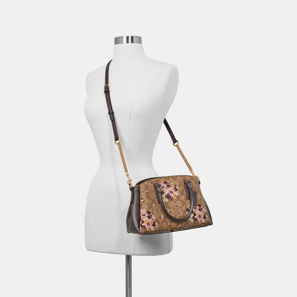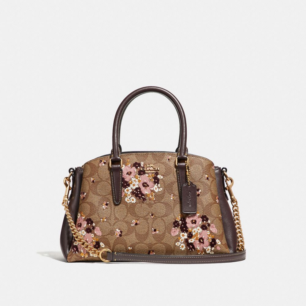 COACH FACTORY OUTLET PRICE CHART - F31437 - MINI SAGE CARRYALL IN SIGNATURE CANVAS WITH FLORAL FLOCKING - KHAKI MULTI /LIGHT GOLD