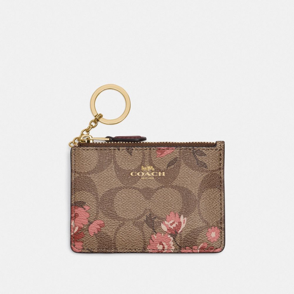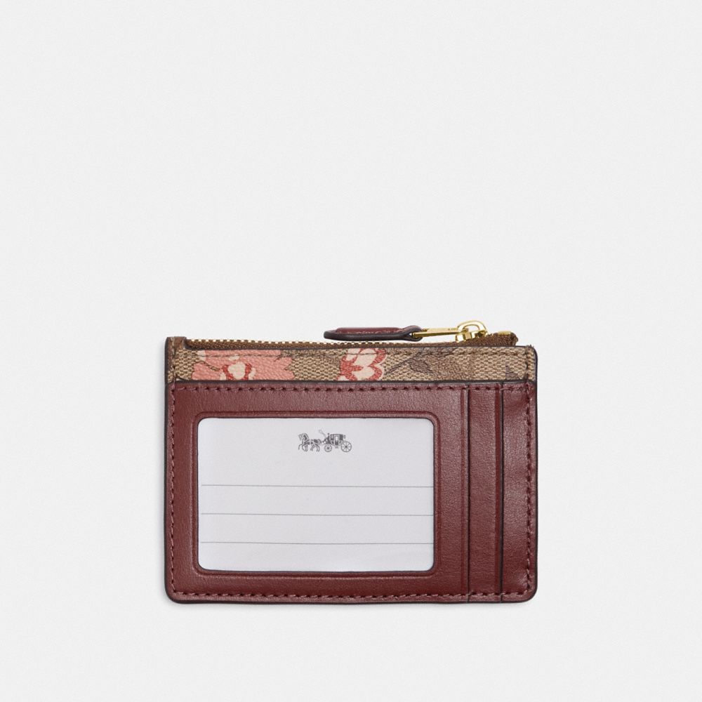 COACH FACTORY OUTLET PRICE CHART - F78047 - MINI SKINNY ID CASE IN SIGNATURE CANVAS WITH PRAIRIE DAISY CLUSTER PRINT - KHAKI CORAL MULTI/IMITATION GOLD
