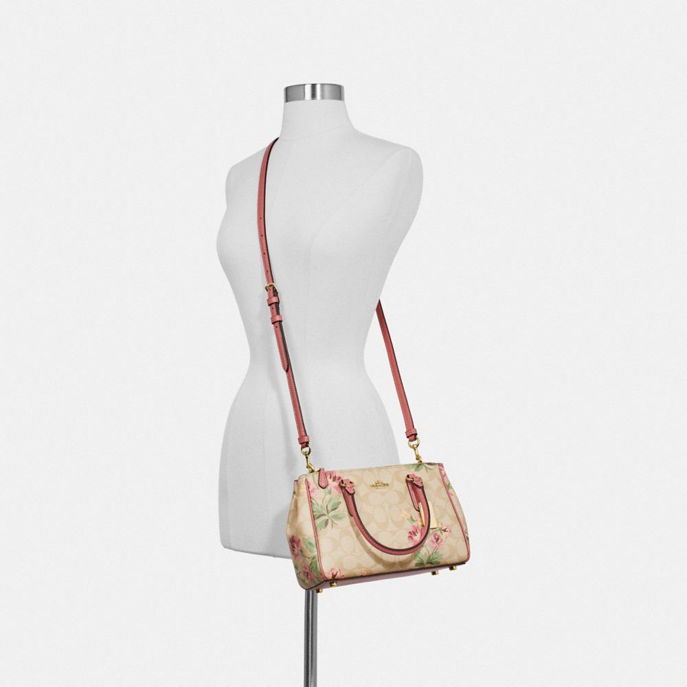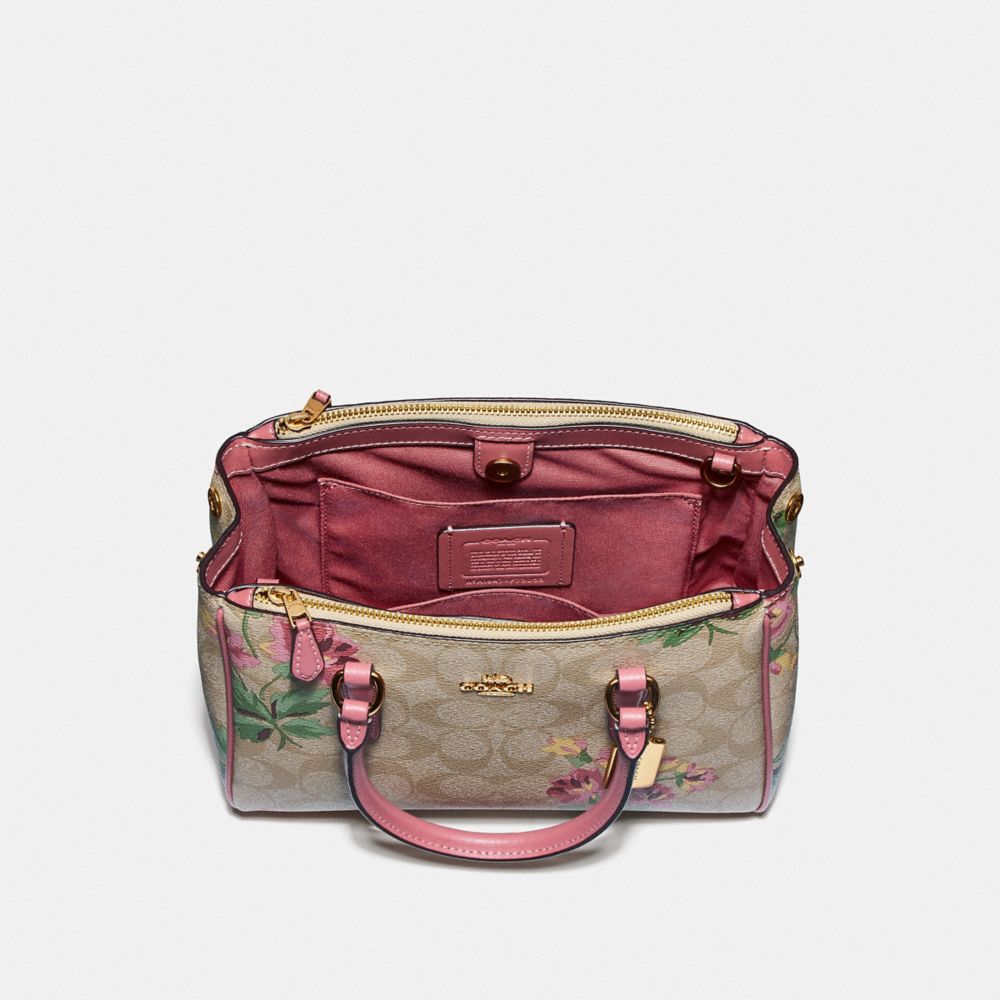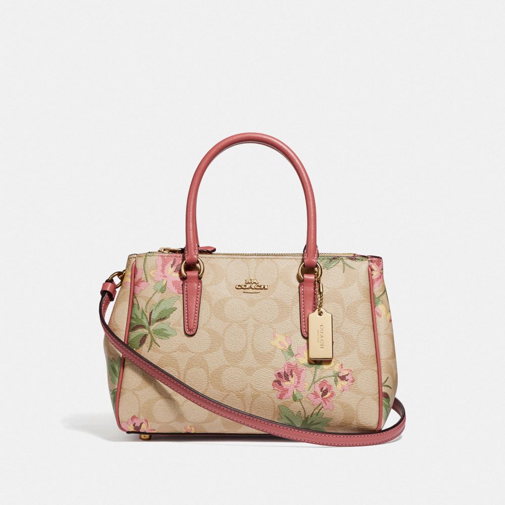 COACH FACTORY OUTLET PRICE CHART - F73055 - MINI SURREY CARRYALL IN SIGNATURE CANVAS WITH LILY PRINT - LIGHT KHAKI/PINK MULTI/IMITATION GOLD