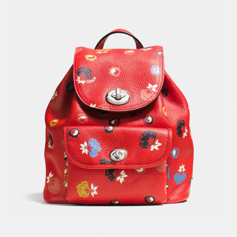 COACH FACTORY OUTLET PRICE CHART - F37738 - MINI TURNLOCK RUCKSACK IN FLORAL PRINT LEATHER - SILVER/CARMINE/WILD PRAIRIE