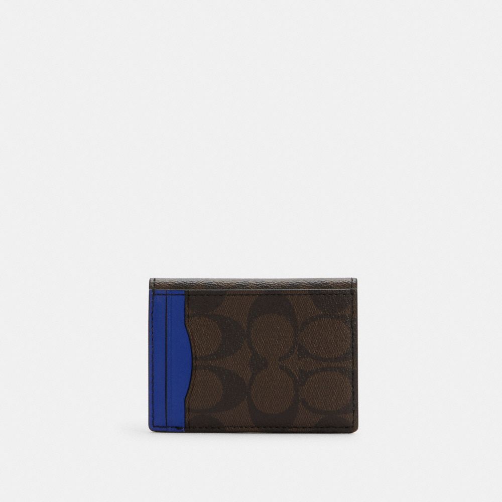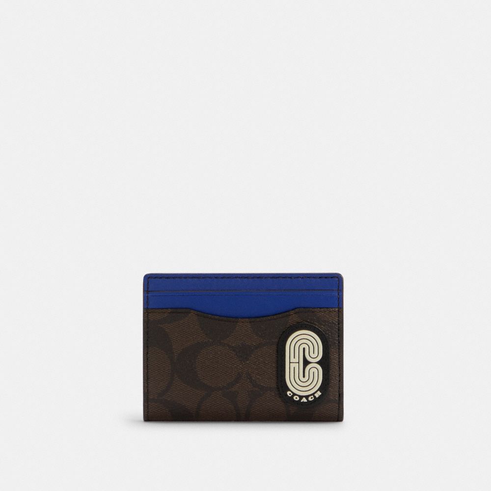 MAGNETIC CARD CASE IN COLORBLOCK SIGNATURE CANVAS WITH COACH PATCH (COACH C7011)