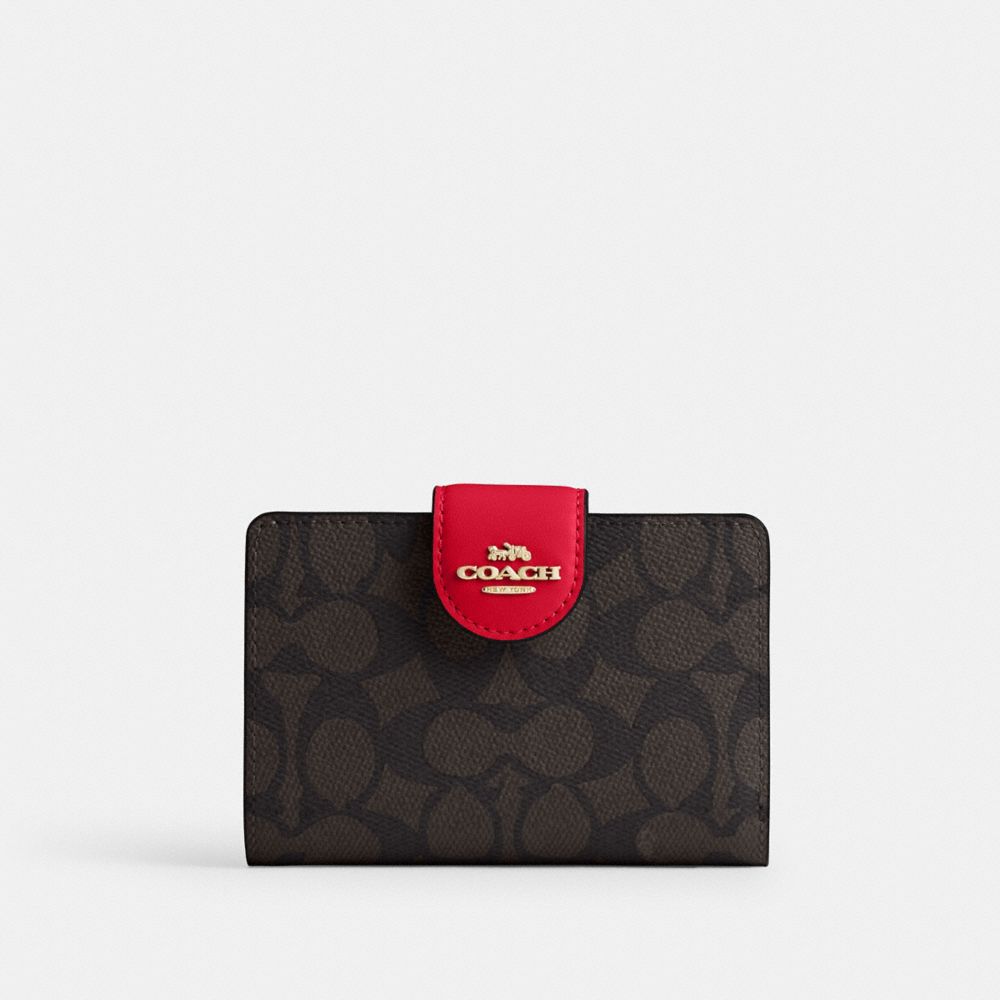 COACH FACTORY OUTLET PRICE CHART - CW786 - MEDIUM CORNER ZIP WALLET IN SIGNATURE CANVAS - GOLD/WALNUT/BOLD RED