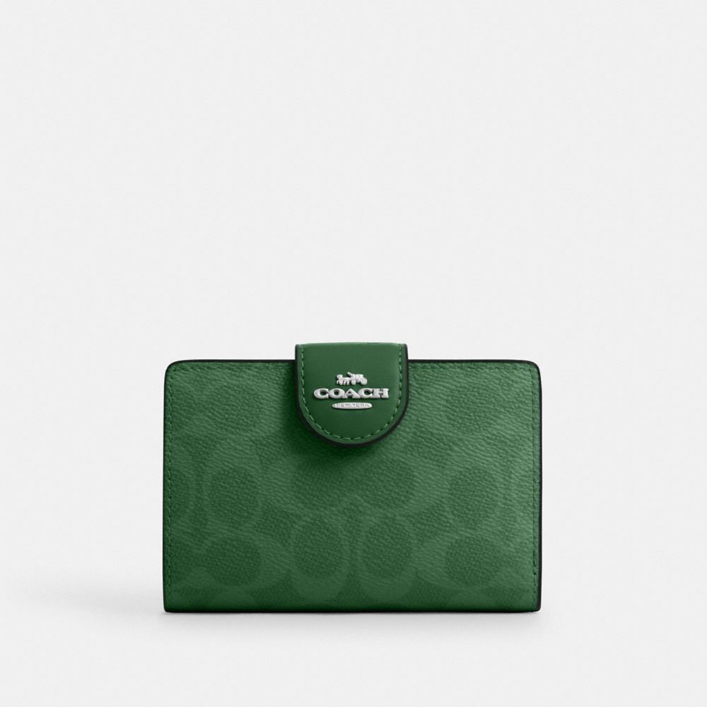 COACH FACTORY OUTLET PRICE CHART - CW786 - MEDIUM CORNER ZIP WALLET IN SIGNATURE CANVAS - SILVER/BRIGHT JADE