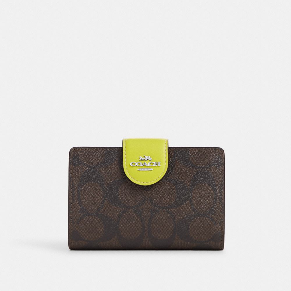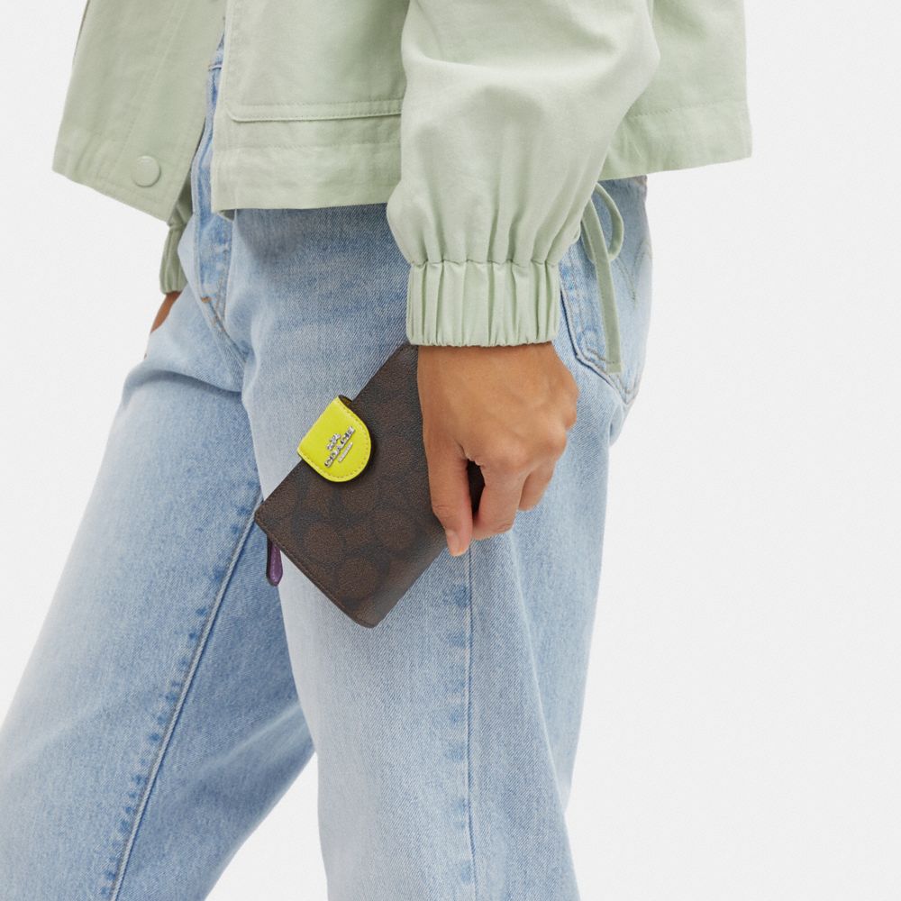 MEDIUM CORNER ZIP WALLET IN SIGNATURE CANVAS WITH COLORBLOCK INTERIOR (COACH CL474)