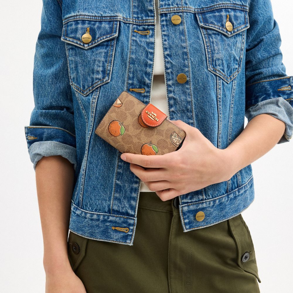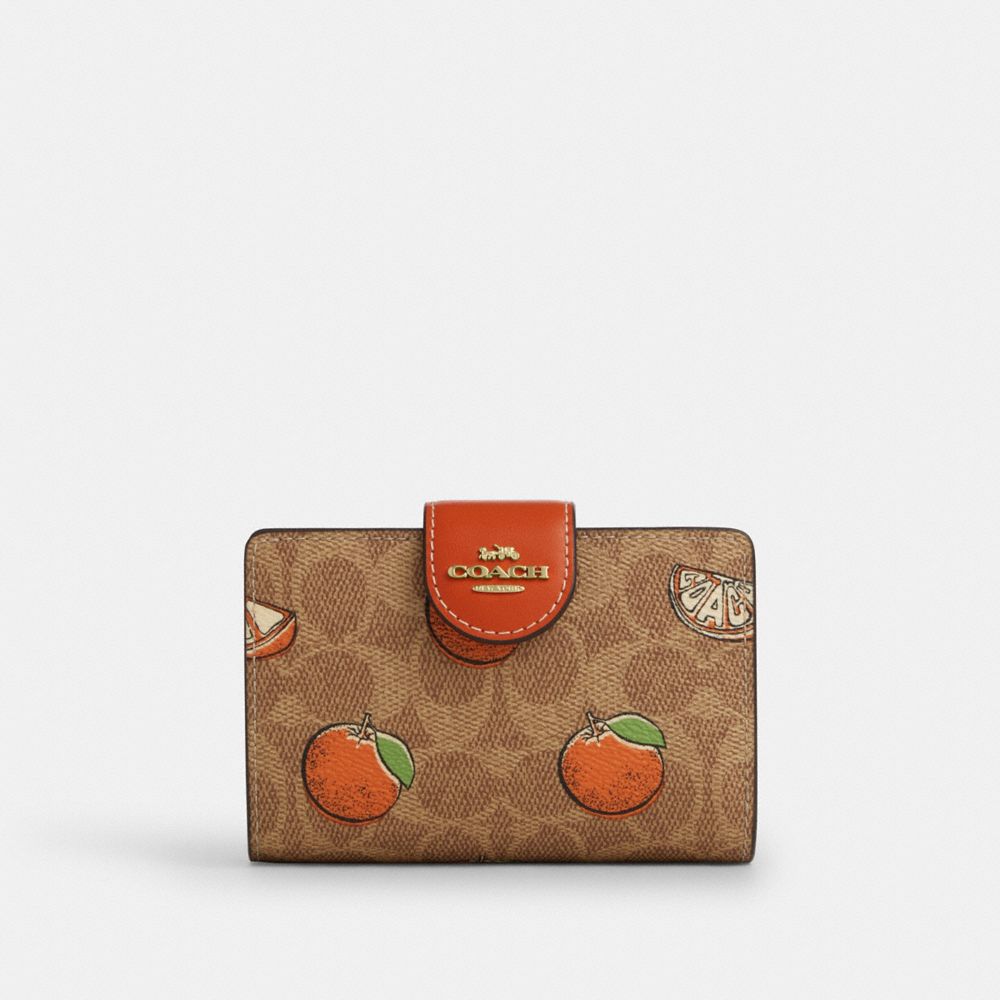 MEDIUM CORNER ZIP WALLET IN SIGNATURE CANVAS WITH ORANGE PRINT (COACH CAP04)