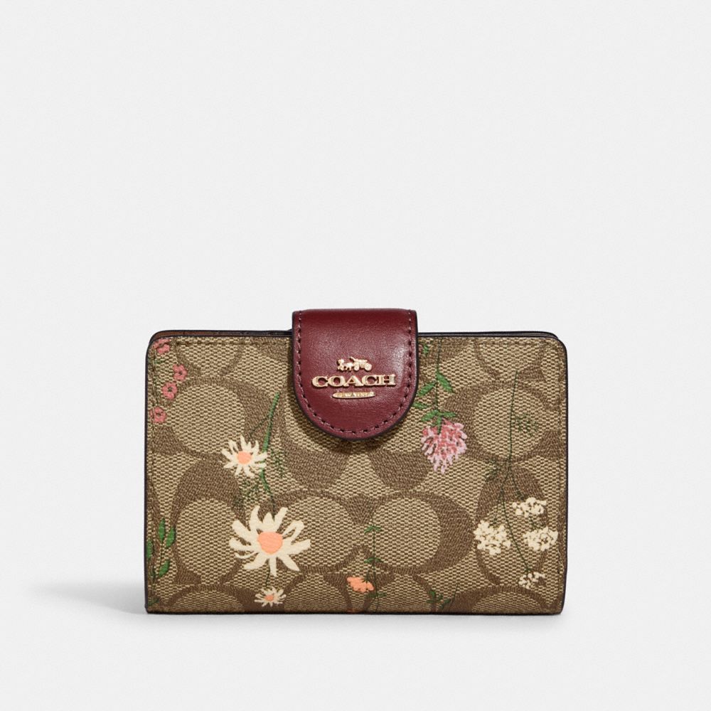 MEDIUM CORNER ZIP WALLET IN SIGNATURE CANVAS WITH WILDFLOWER PRINT (COACH C8730)