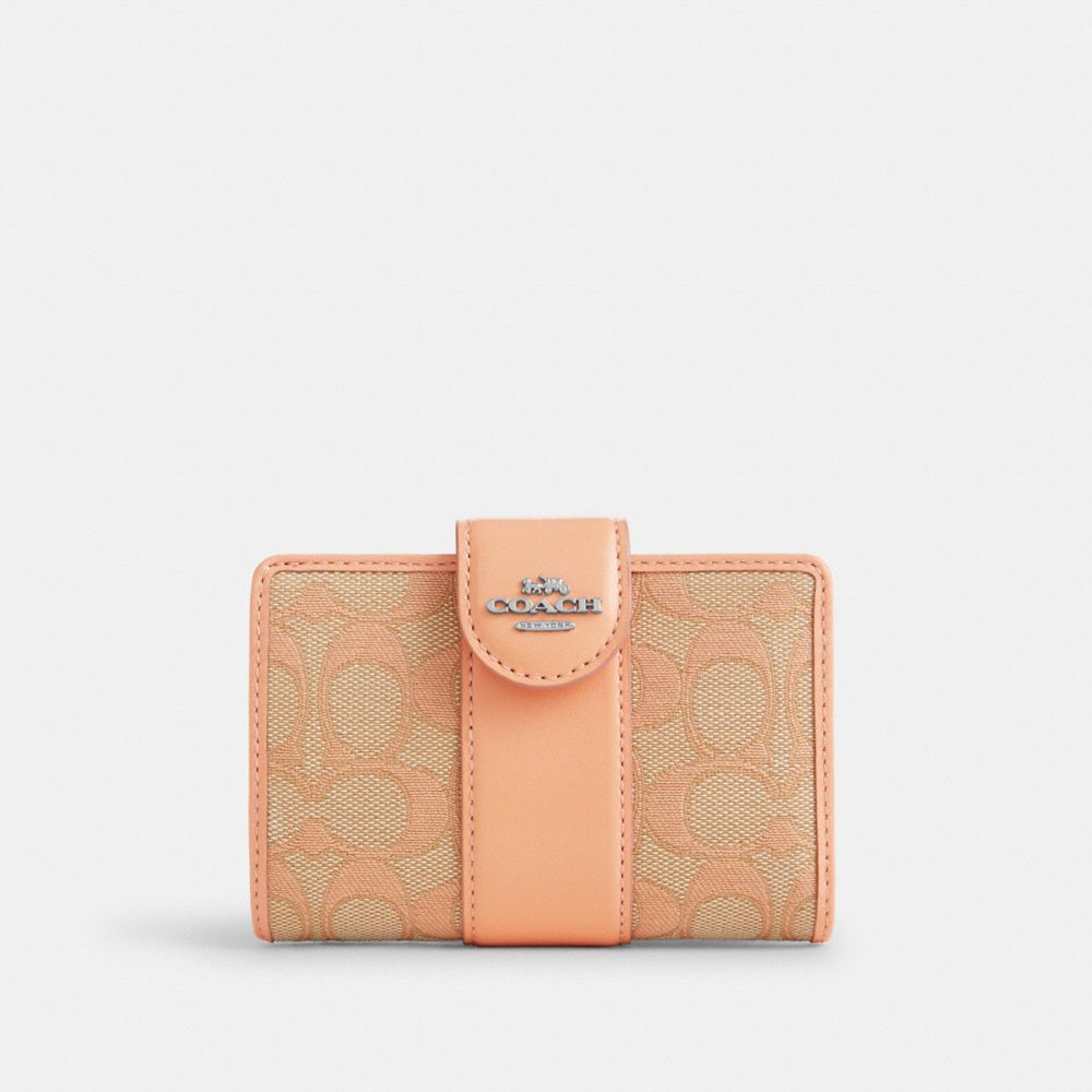 COACH FACTORY OUTLET PRICE CHART - CT922 - MEDIUM CORNER ZIP WALLET IN SIGNATURE JACQUARD - SV/FADED BLUSH