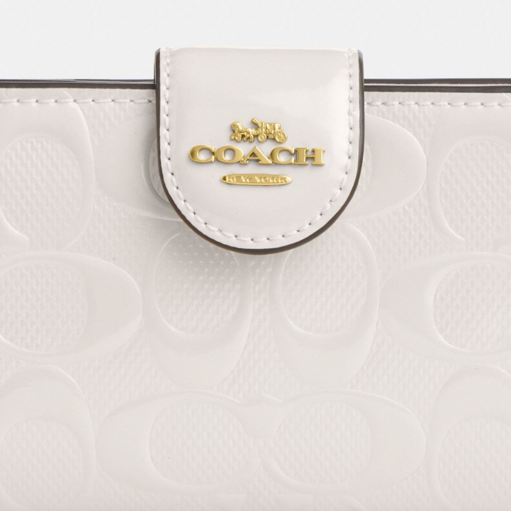 | Signature patent leather | Seven credit card slots | Bill compartment | ID window | Snap closure | Zip coin pocket | 5" (L) x 3 1/2" (H) x 1/2" (W)|Style No. CT979|
