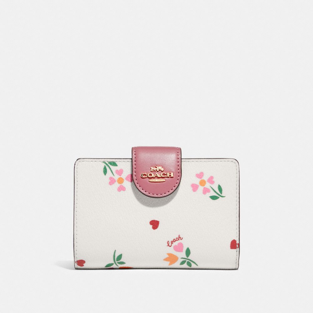MEDIUM CORNER ZIP WALLET WITH HEART PETAL PRINT (COACH C7652)