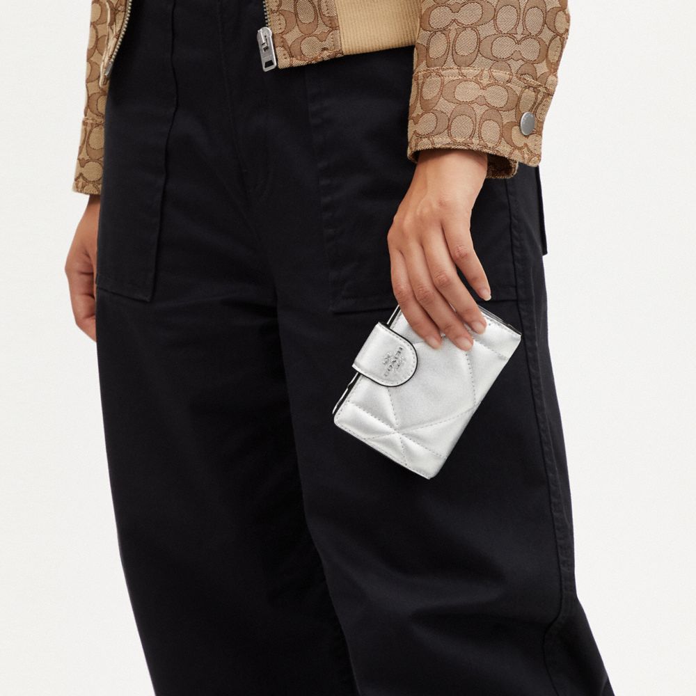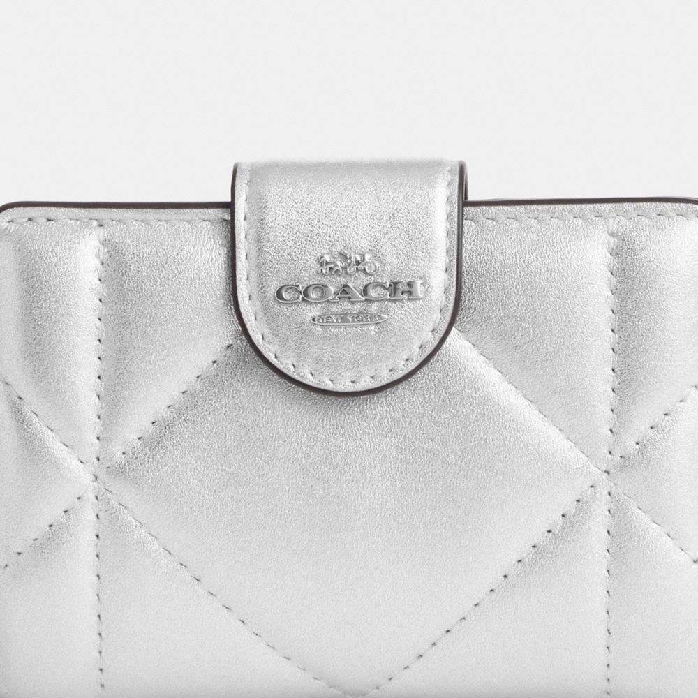 COACH FACTORY OUTLET PRICE CHART - CM998 - MEDIUM CORNER ZIP WALLET WITH PUFFY DIAMOND QUILTING - SILVER/METALLIC SILVER