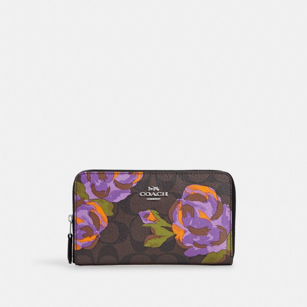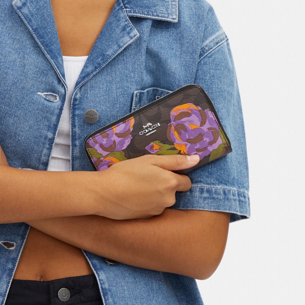 MEDIUM ID ZIP WALLET IN SIGNATURE CANVAS WITH ROSE PRINT (COACH CL672)