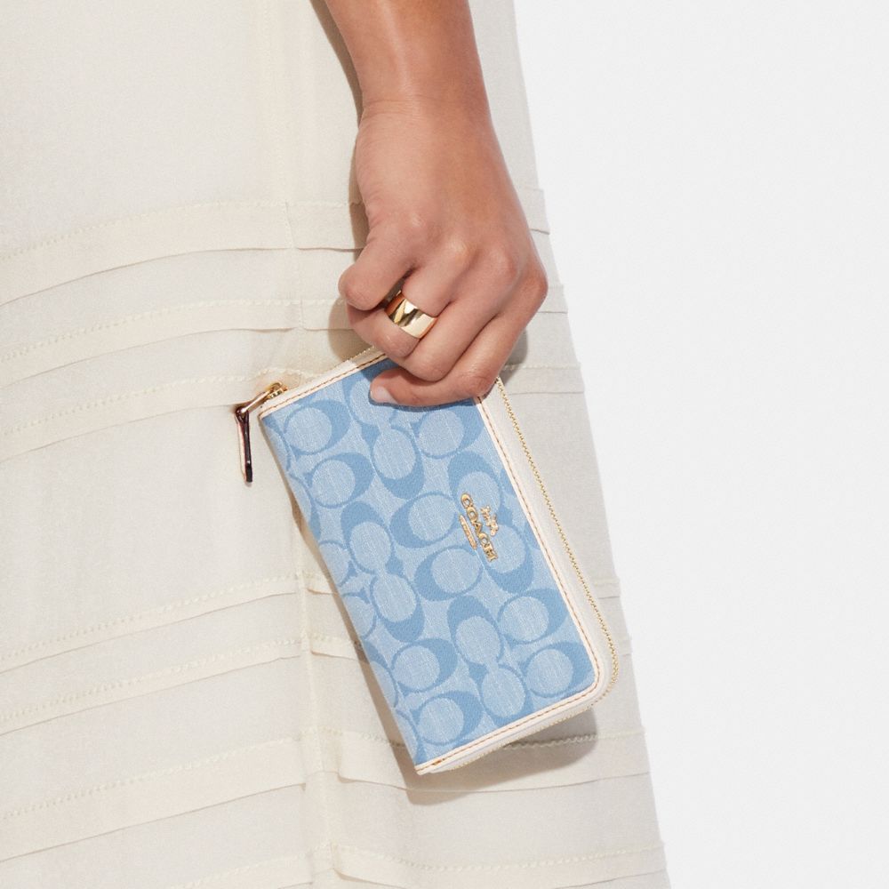 MEDIUM ID ZIP WALLET IN SIGNATURE CHAMBRAY (COACH CA733)