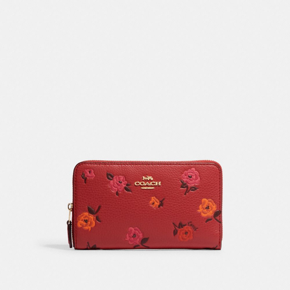 COACH FACTORY OUTLET PRICE CHART - CF309 - MEDIUM ID ZIP WALLET WITH PEONY PRINT - GOLD/RED APPLE MULTI