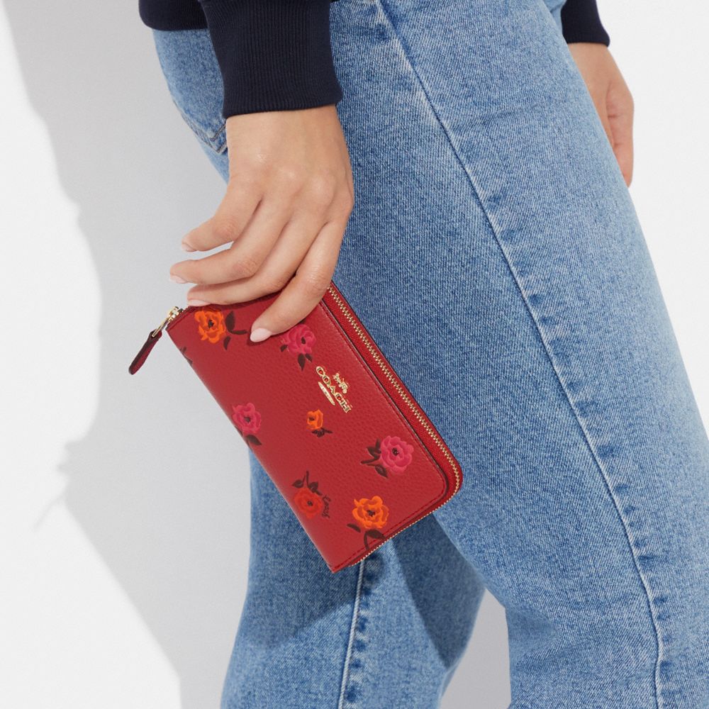 MEDIUM ID ZIP WALLET WITH PEONY PRINT (COACH CF309)