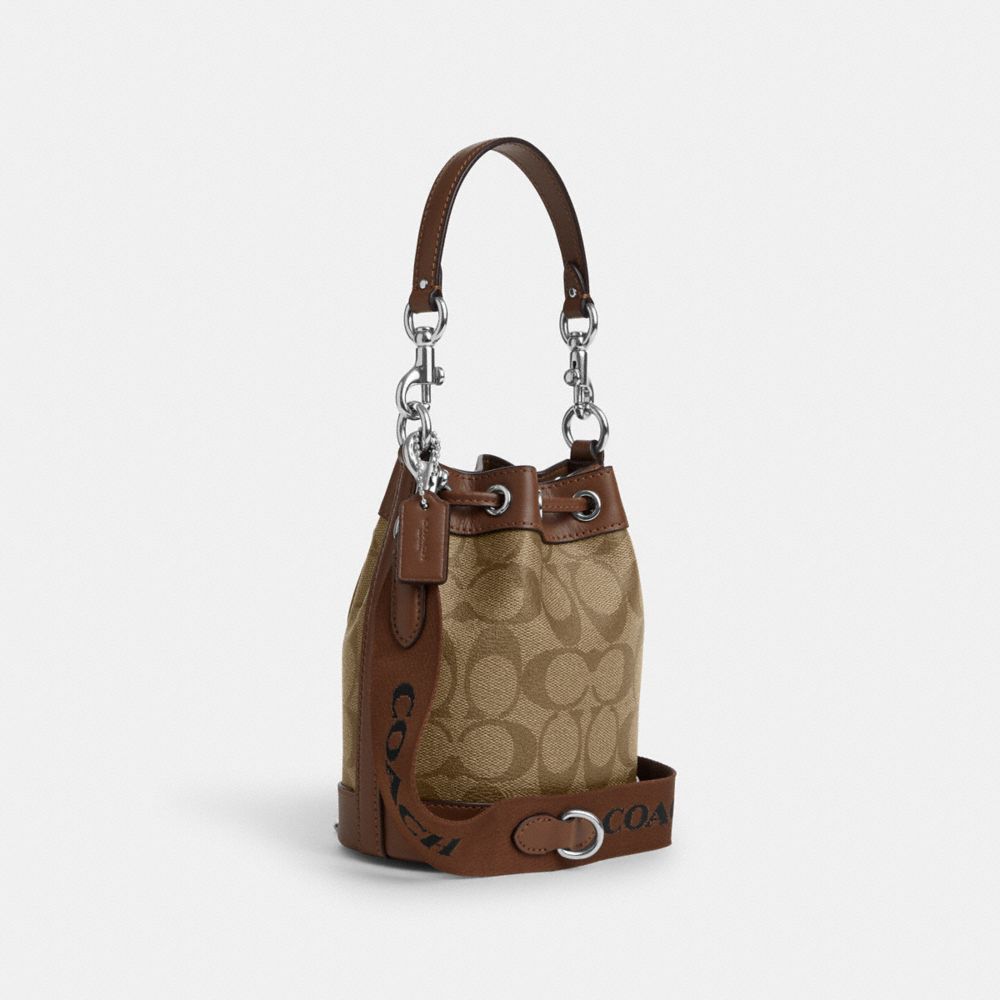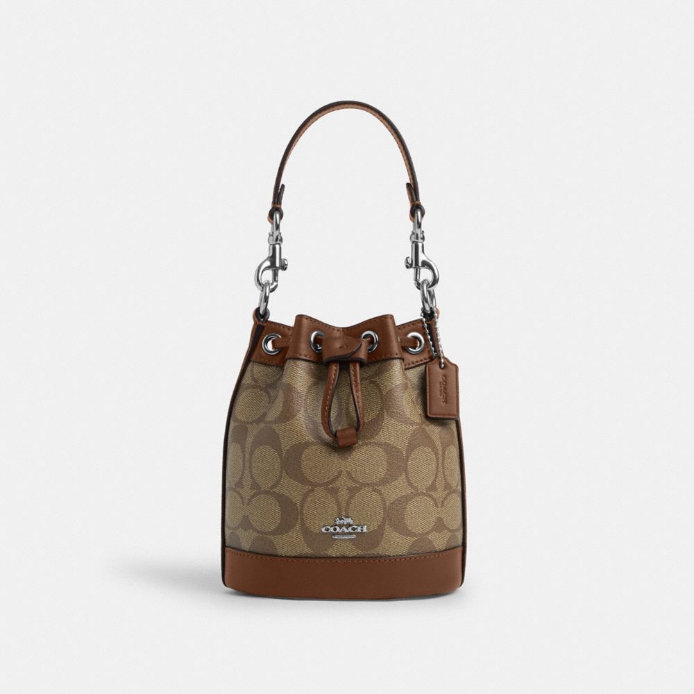 COACH FACTORY OUTLET PRICE CHART - CR145 - MINI BUCKET BAG IN SIGNATURE CANVAS - SILVER/KHAKI/SADDLE