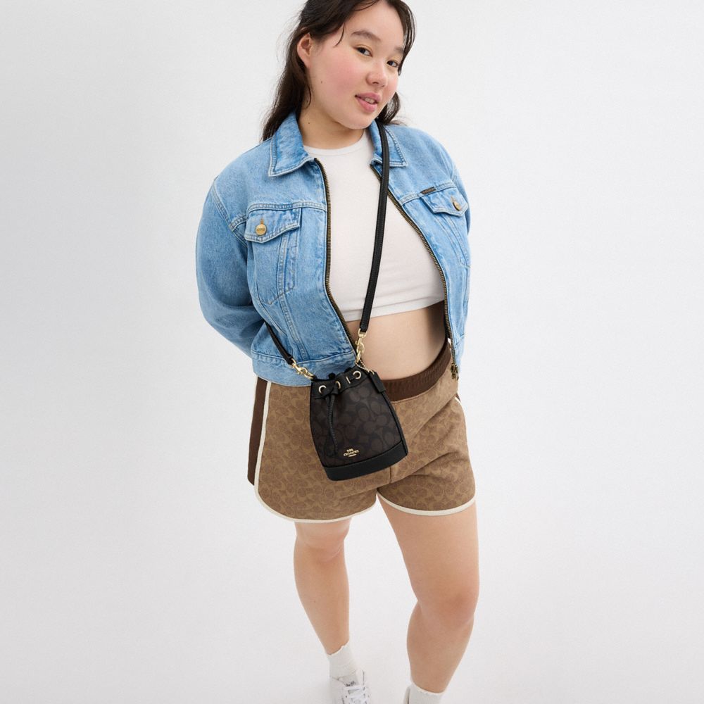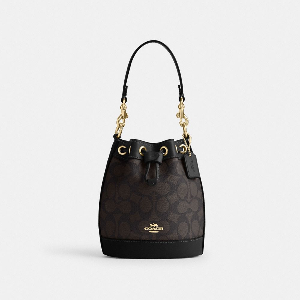 COACH FACTORY OUTLET PRICE CHART - CW299 - MINI BUCKET BAG IN SIGNATURE CANVAS - GOLD/WALNUT/BLACK