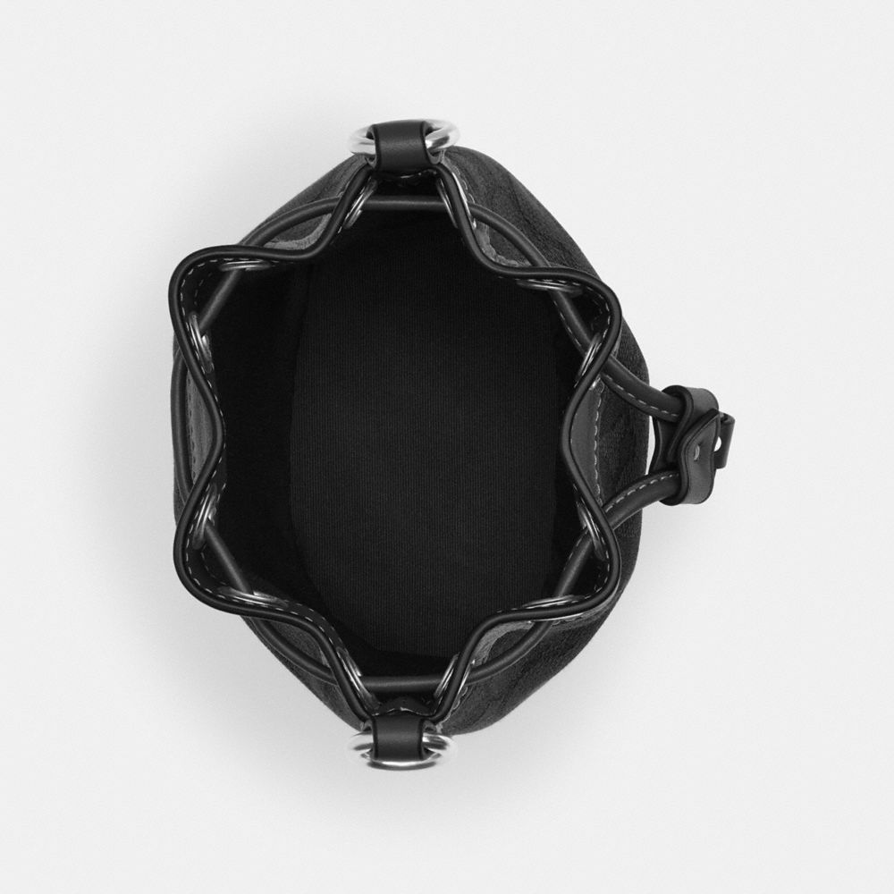 | Signature jacquard and soft refined calf leather | Drawstring closure, fabric lining | Detachable handle with 5 1/2" drop | Detachable strap with 23" drop for shoulder or crossbody wear | 5 1/2" (L) x 6 1/2" (H) x 3 1/2" (W) | Exclusive of trim, this Coach piece is crafted of our Signature jacquard made from a blend of organic cotton and recycled polyester|Style No. CT863|