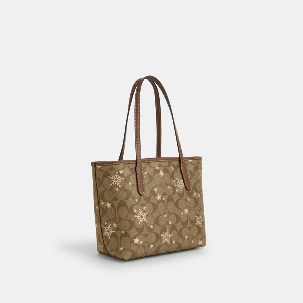 MINI CITY TOTE IN SIGNATURE CANVAS WITH STAR AND SNOWFLAKE PRINT (COACH CN682)