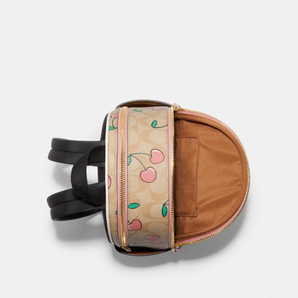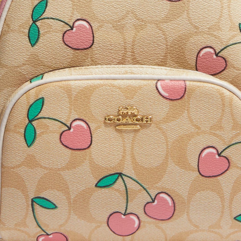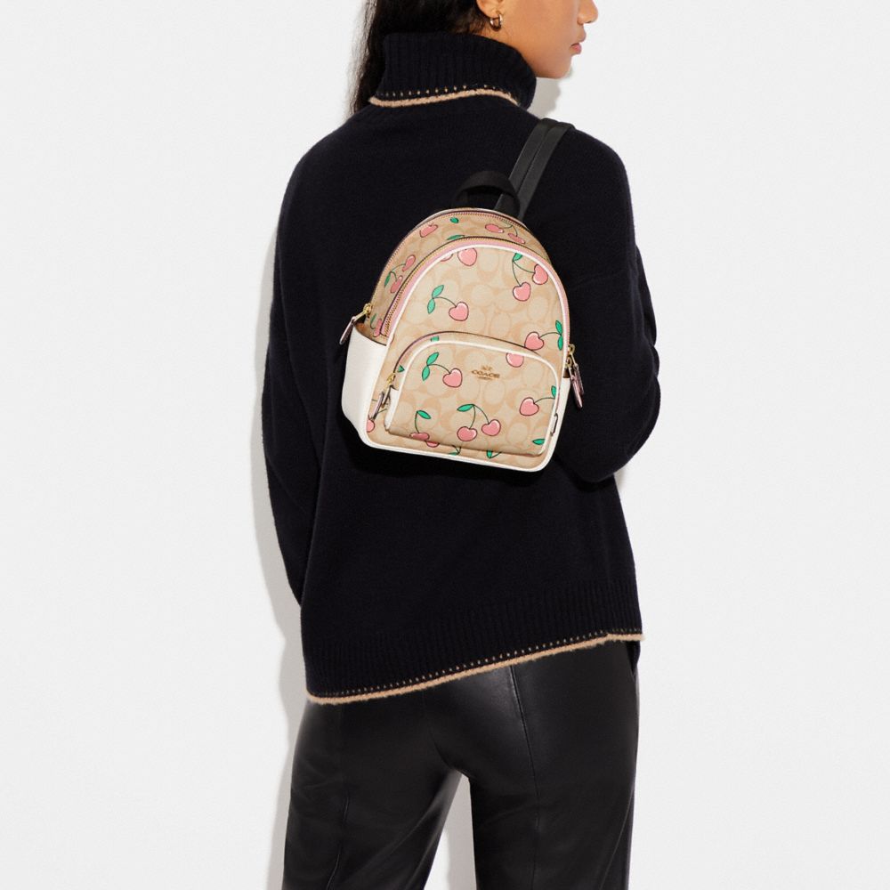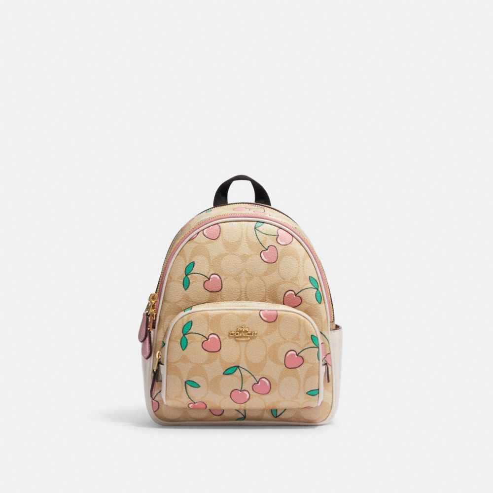 COACH FACTORY OUTLET PRICE CHART - CF424 - MINI COURT BACKPACK IN SIGNATURE CANVAS WITH HEART CHERRY PRINT - GOLD/LIGHT KHAKI MULTI