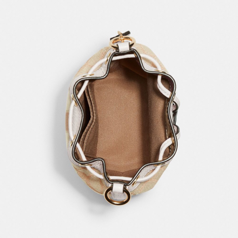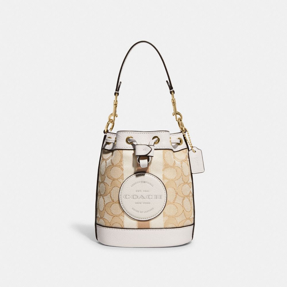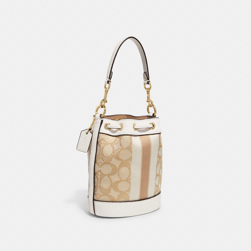 COACH FACTORY OUTLET PRICE CHART - C8322 - MINI DEMPSEY BUCKET BAG IN SIGNATURE JACQUARD WITH STRIPE AND COACH PATCH - GOLD/LIGHT KHAKI CHALK