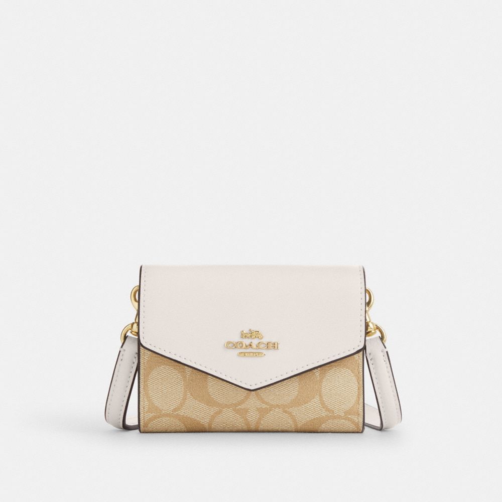 COACH FACTORY OUTLET PRICE CHART - CU172 - MINI ENVELOPE WALLET WITH STRAP IN SIGNATURE CANVAS - GOLD/LIGHT KHAKI CHALK